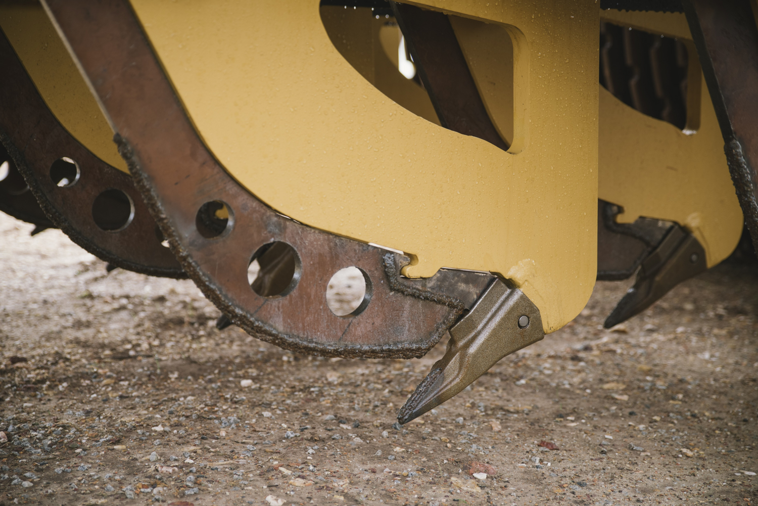 Rib teeth remove rocks in Roller Ribs to maintain machine effectiveness.